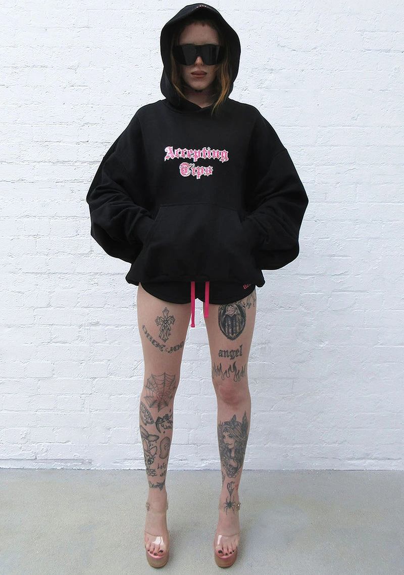 Accepting Tips Rhinestone Pullover Hoodie Black