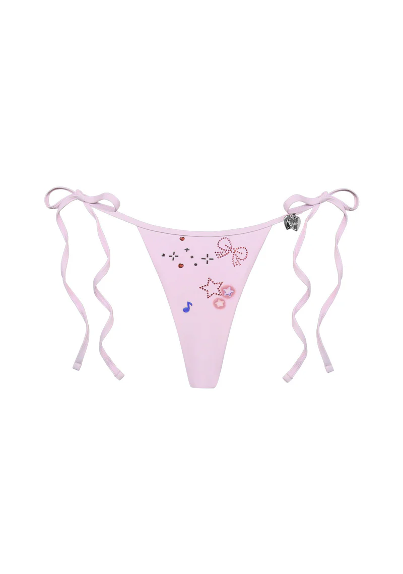 Charm Rhinestone Thong Bikini Bottoms Baby Pink