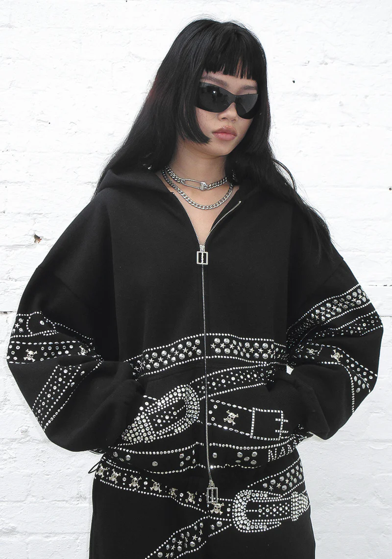 Be the first to review “Crush Studded Belt ZIP Hoodie Black” Cancel reply