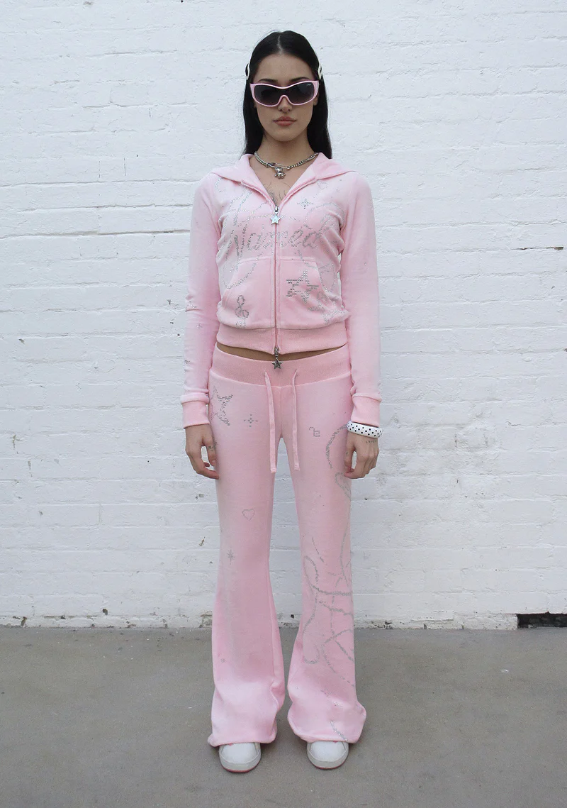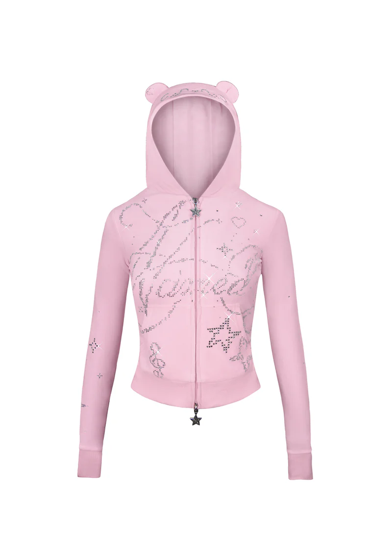 Dreamer Rhinestone Velour Teddy ZIP Hoodie Baby Pink