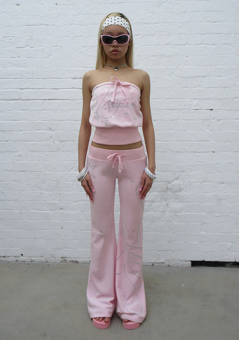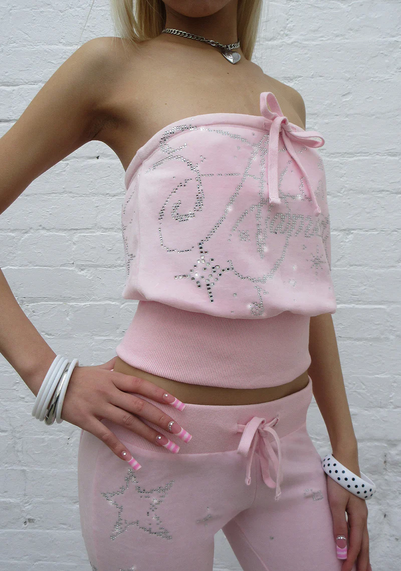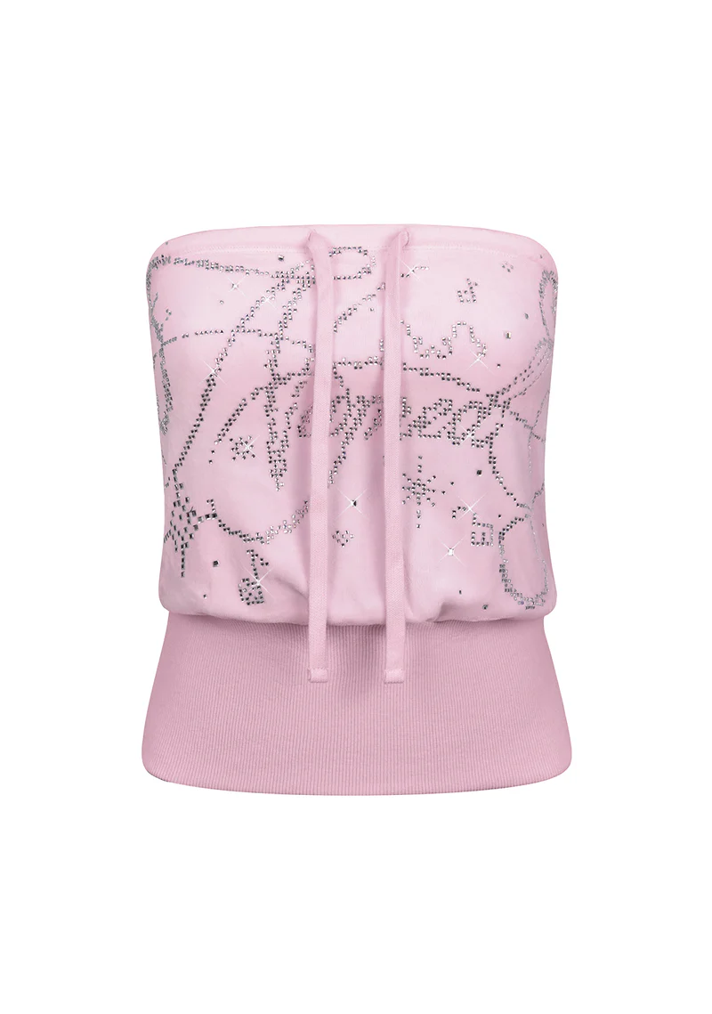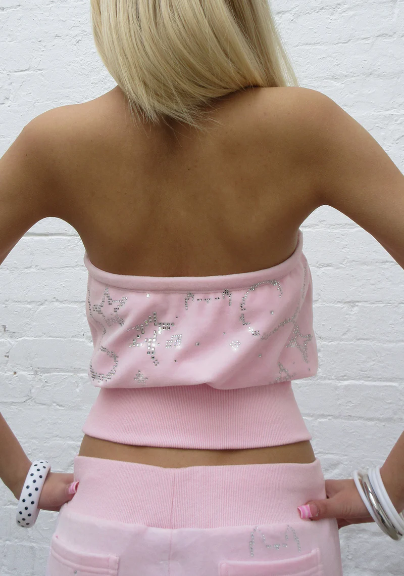 Dreamer Rhinestone Velour Tube Top Baby Pink