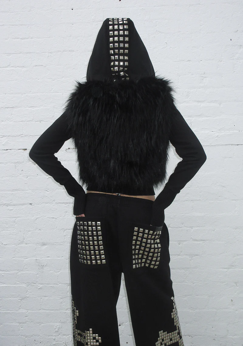 Named Collective Feral Faux Fur Studded Zip (Detachable Fur) Black Hoodie