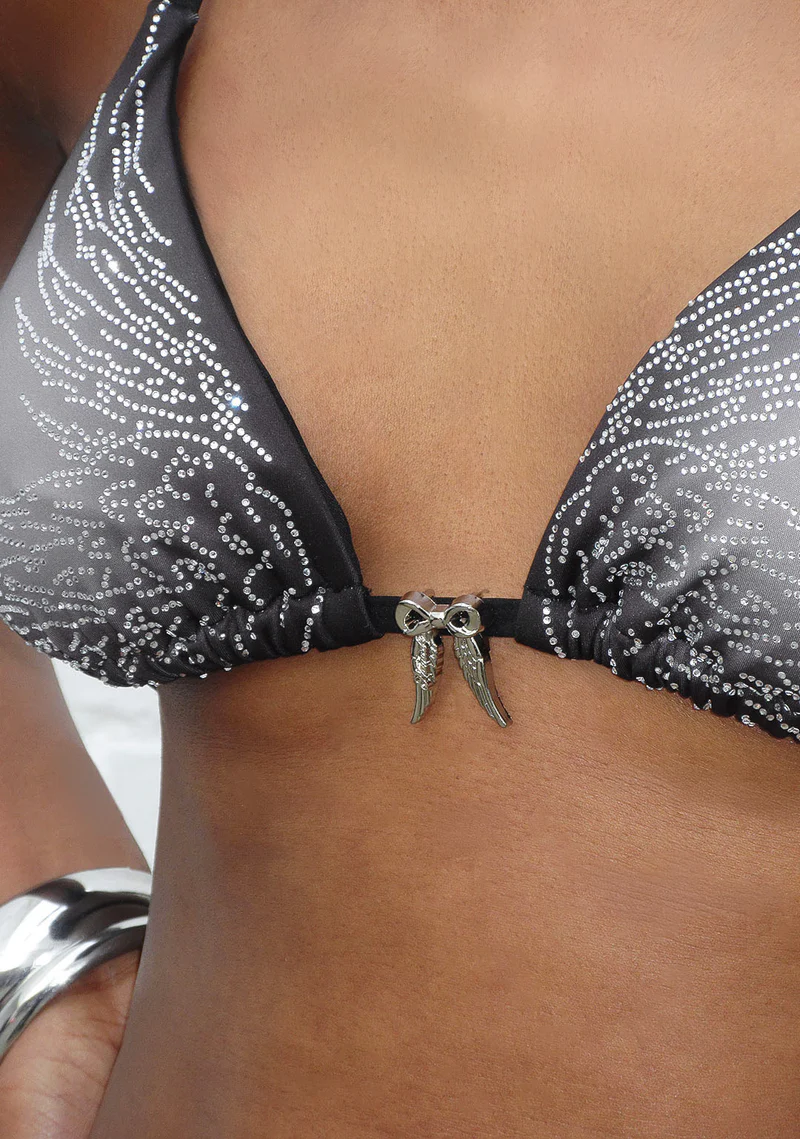 Fallen Rhinestone Triangle Bikini Top Washed Black