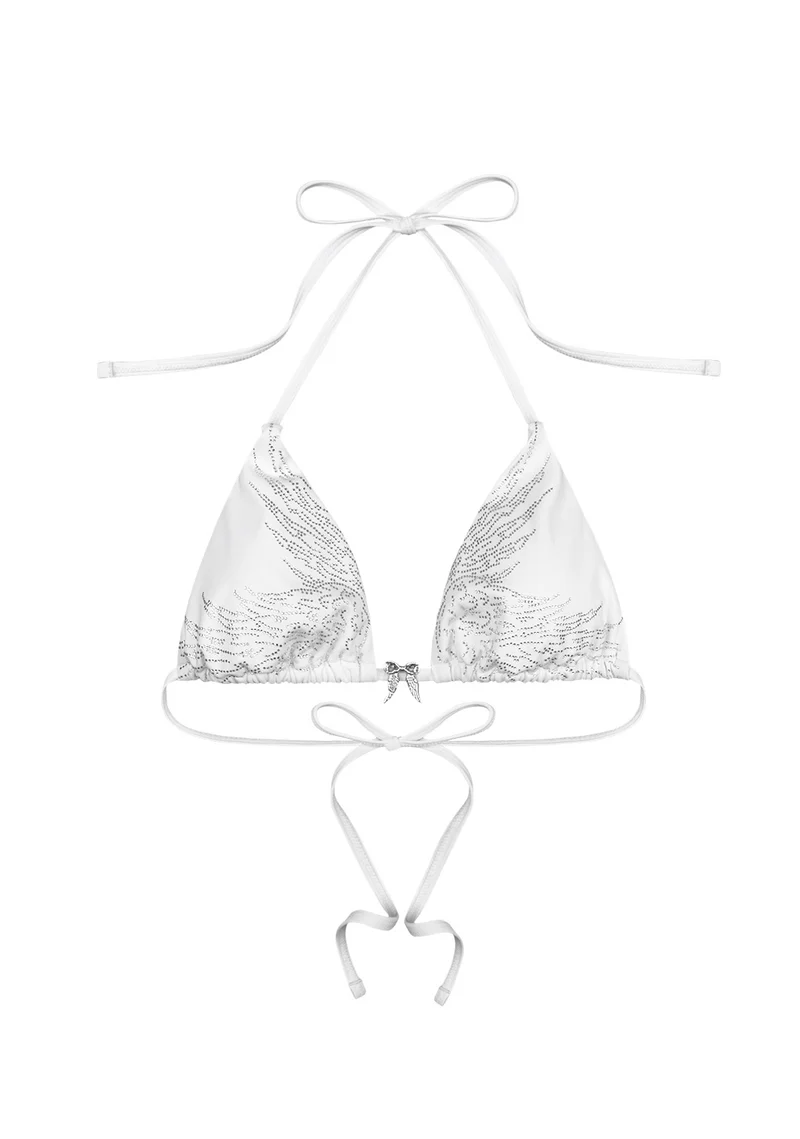 Fallen Rhinestone Triangle Bikini Top White