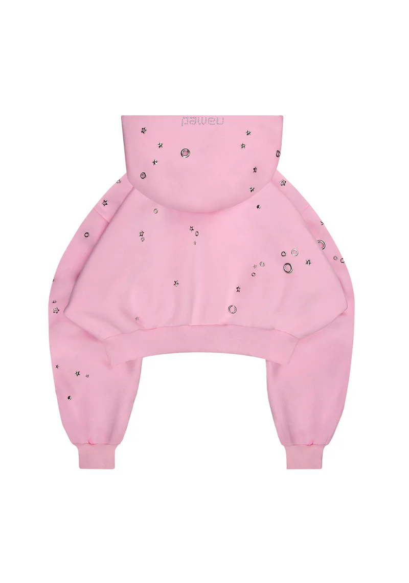 Glitch Eyelet Crop ZIP Hoodie Baby Pink