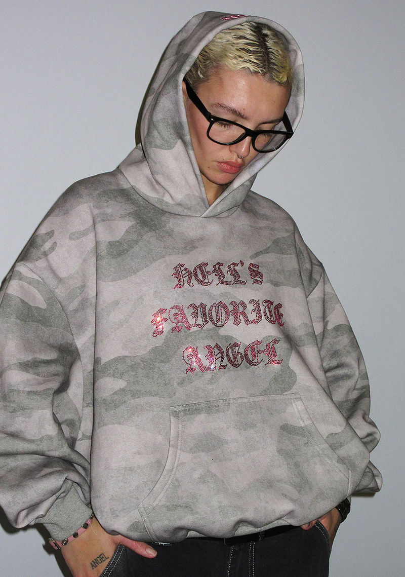 Hell’s Favorite Rhinestone Pullover Hoodie Camo