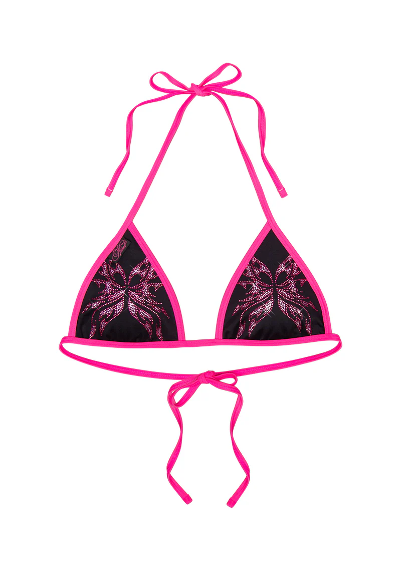 Idol Rhinestone Triangle Bikini Top Black