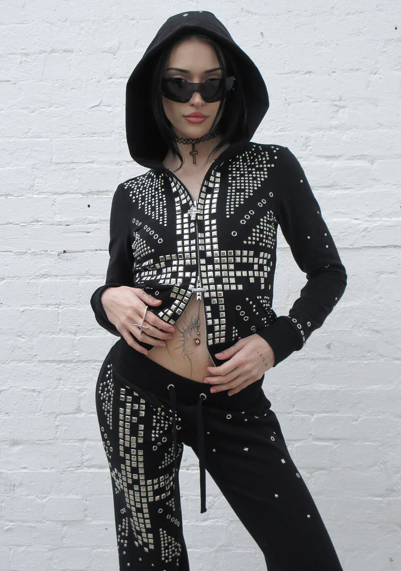 Named Collective Crash Rhinestone Zip Black Hoodie