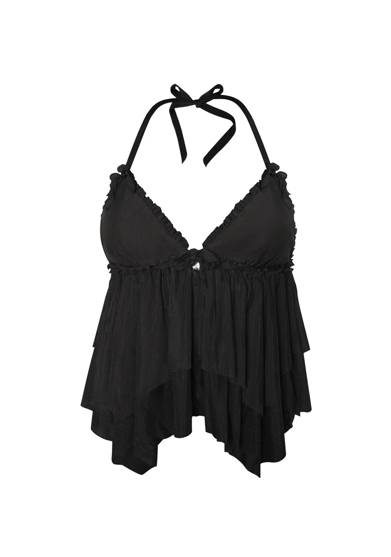 Lovebite Sheer Mesh Halterneck Cami Top Black