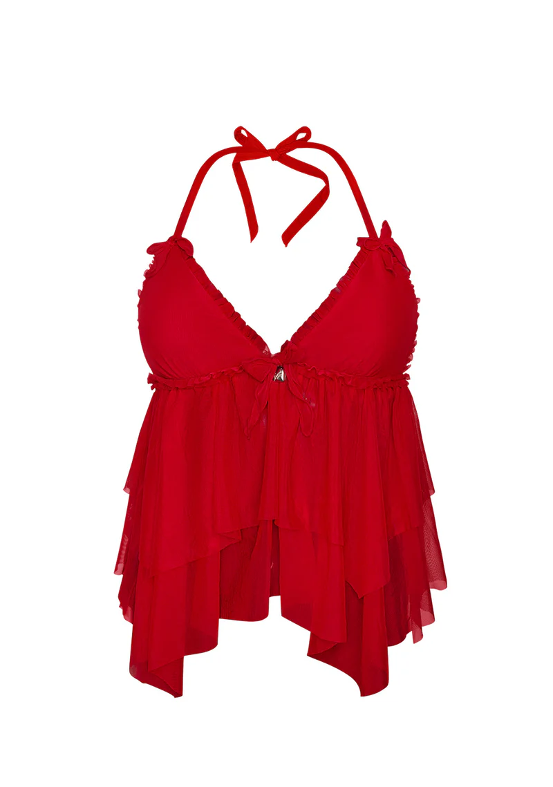 Lovebite Sheer Mesh Halterneck Cami Top Red