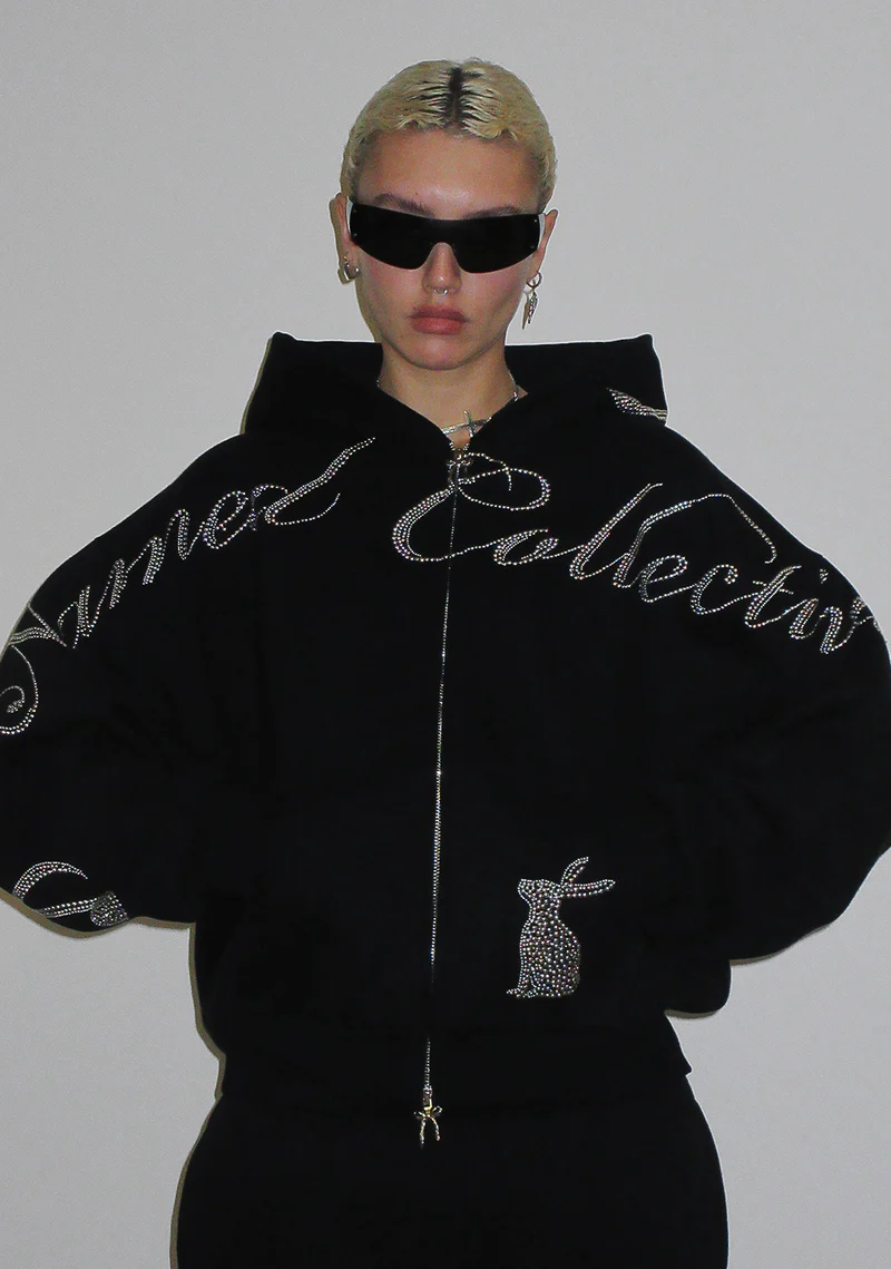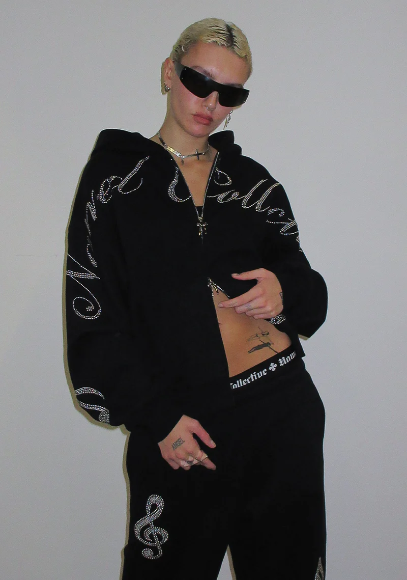 Named Collective Enemy Rhinestone Crop Zip Hoodie Black