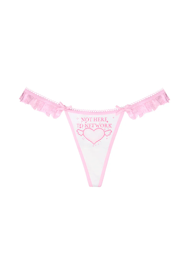 Network Glitter Lace Ruffle Thong White