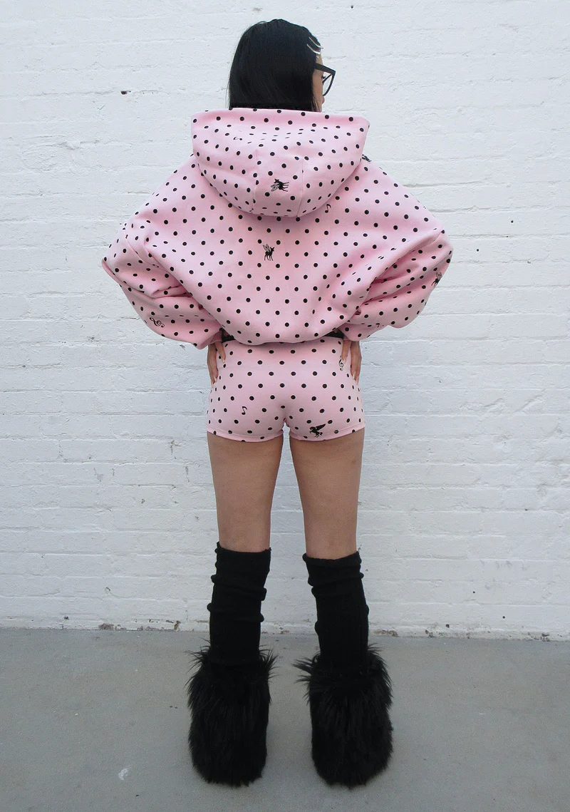 Nova Polka Dot Crop ZIP Hoodie Baby Pink