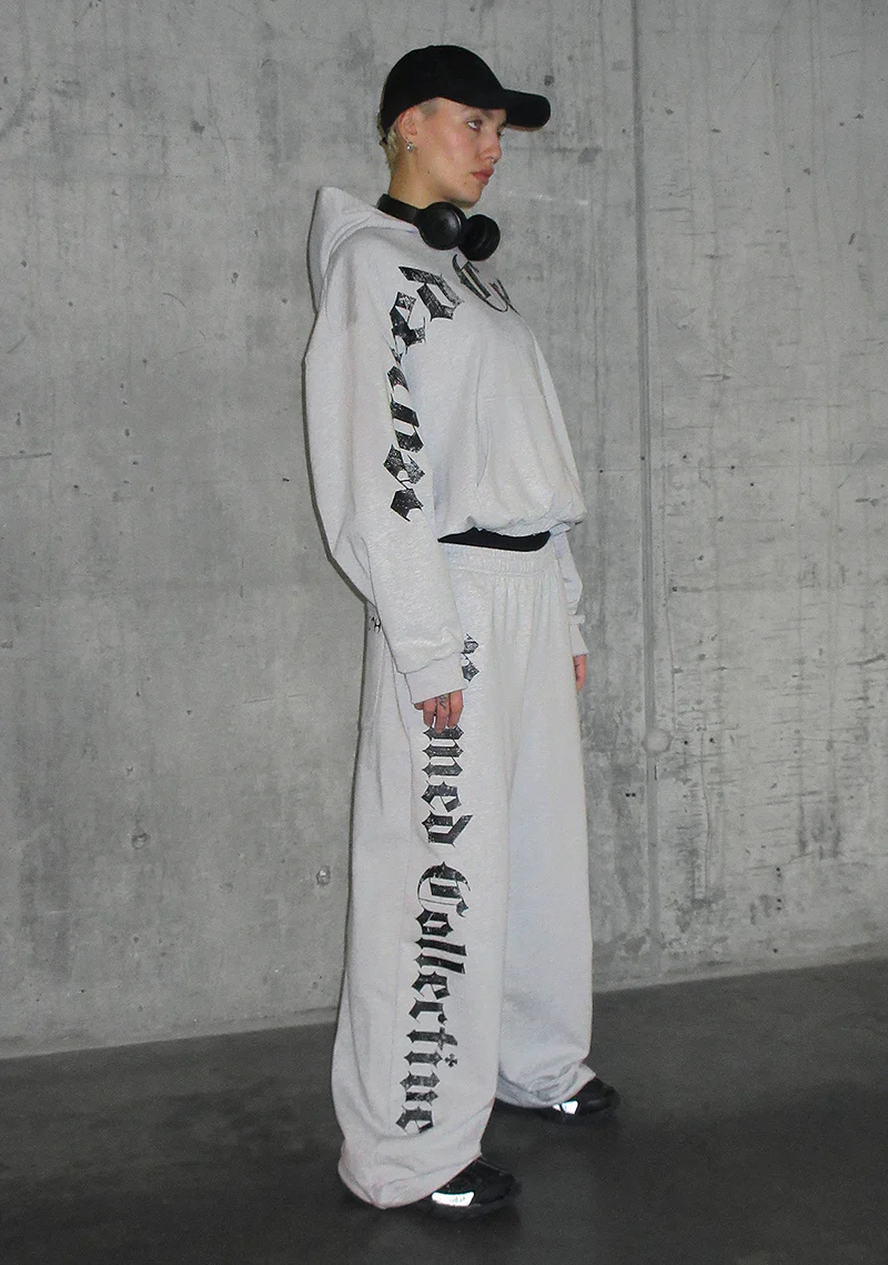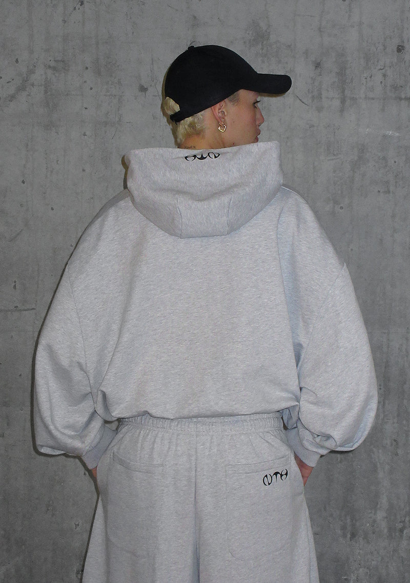 Nth Active Old English Oversized Pullover Hoodie Grey Marl