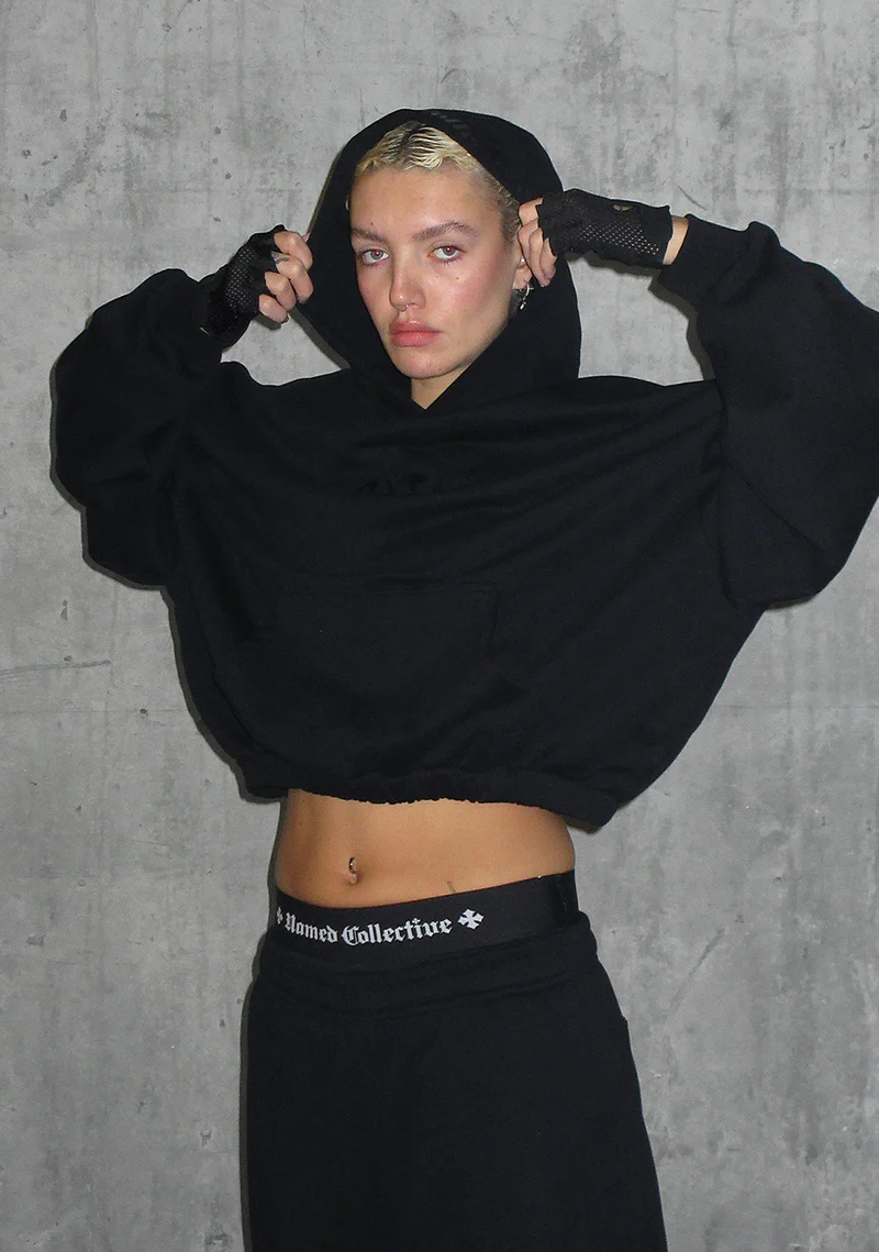 Named Collective Enemy Rhinestone Crop Zip Hoodie Black