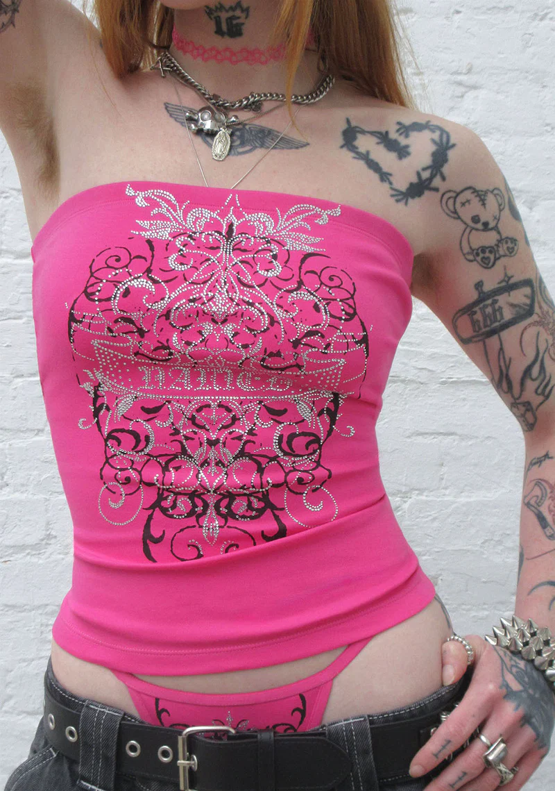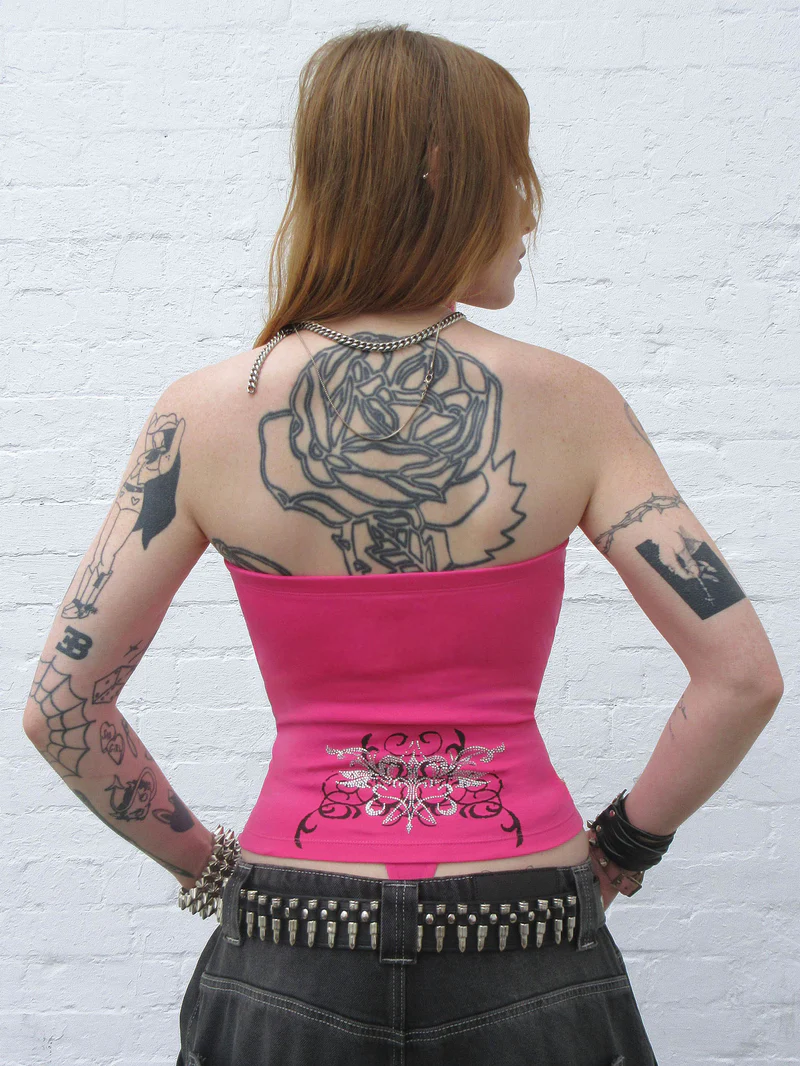 Obsession Rhinestone Tube Top Hot Pink