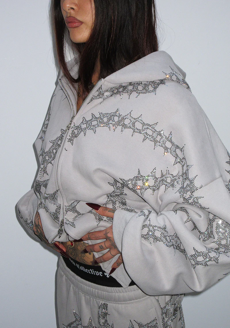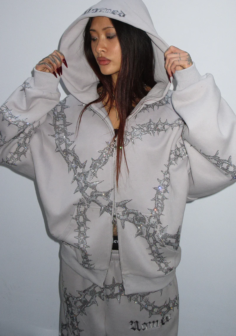 Omen Rhinestone ZIP Hoodie Smoke Grey