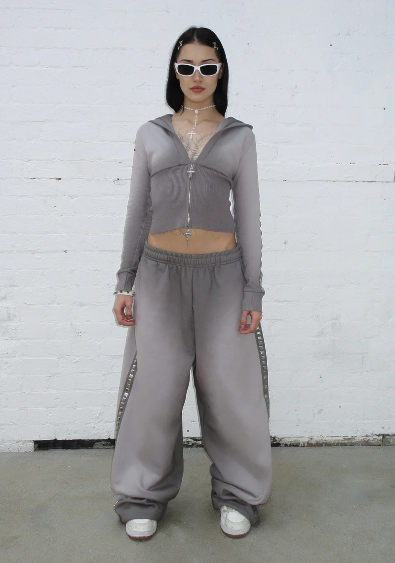 Be the first to review “Rumour Studded Fitted ZIP Hoodie Gradient Grey” Cancel reply