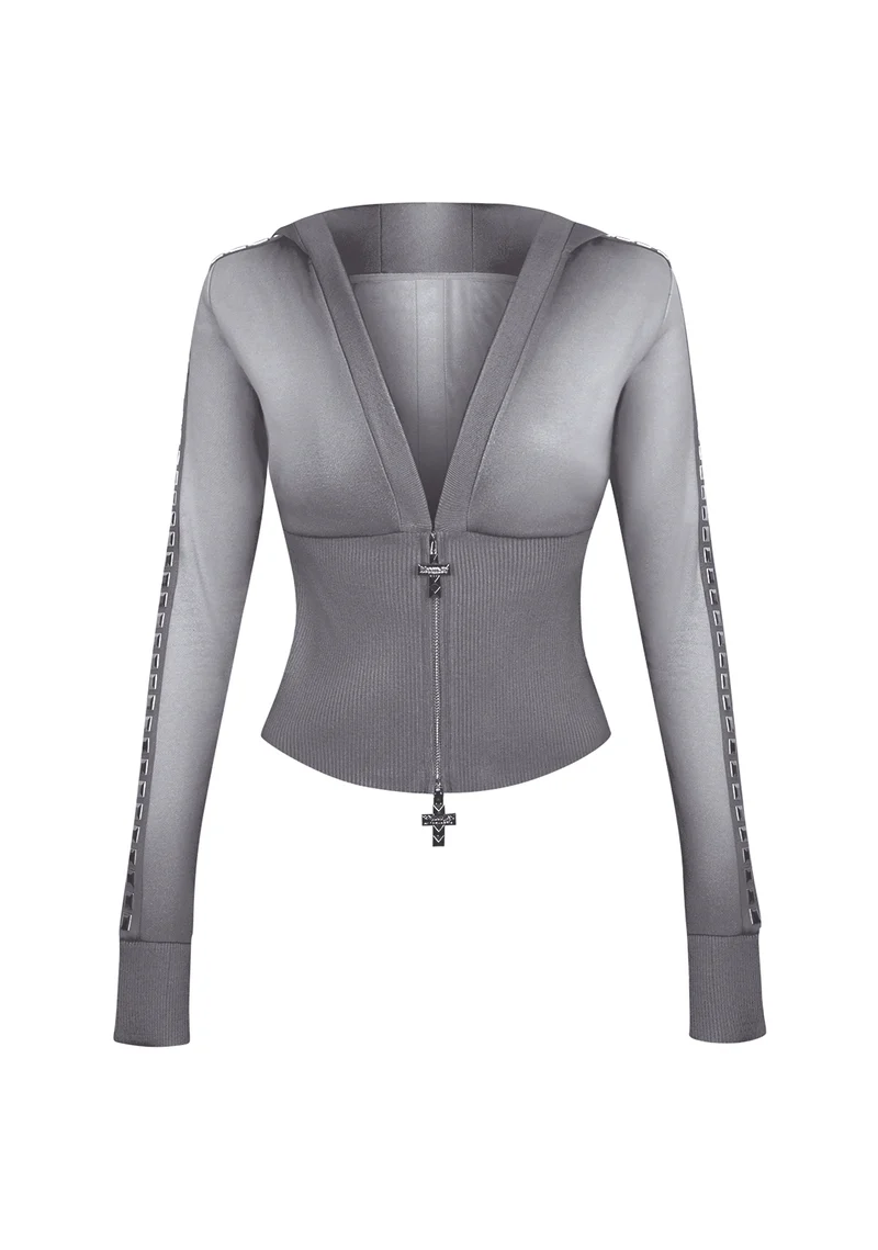 Rumour Studded Fitted ZIP Hoodie Gradient Grey