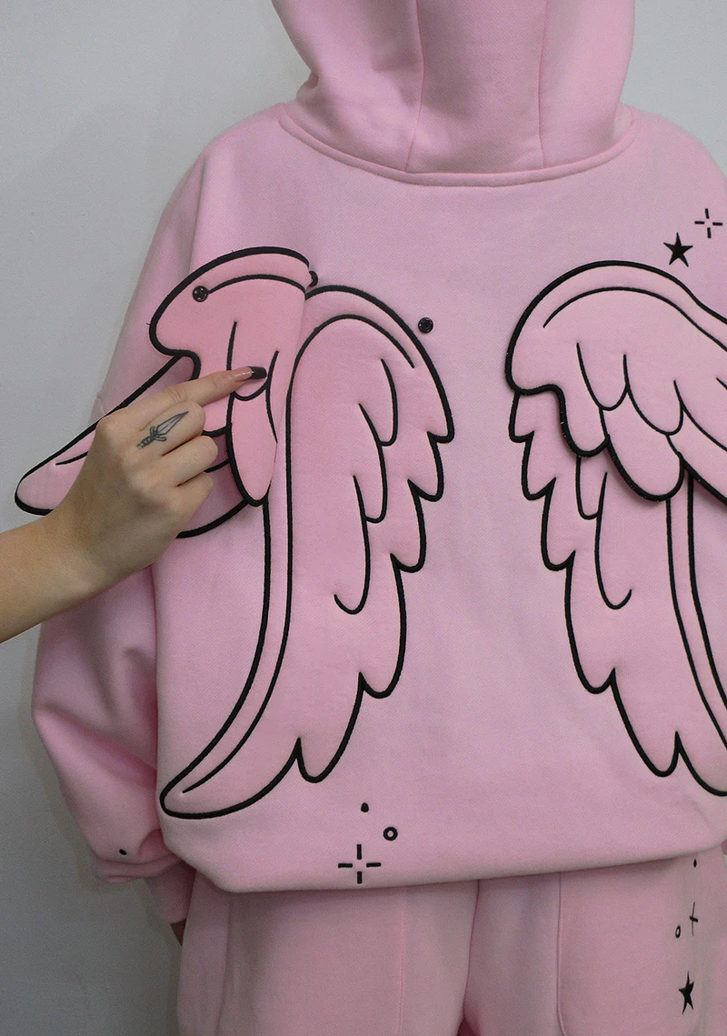 Stitch Wings Pullover Hoodie Baby Pink (Detachable Wings)