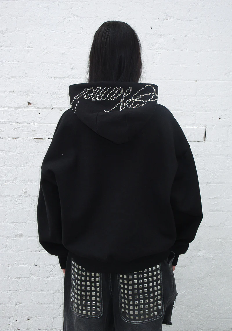 Strangers Studded Silhouette Pullover Hoodie Black