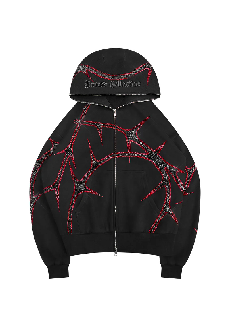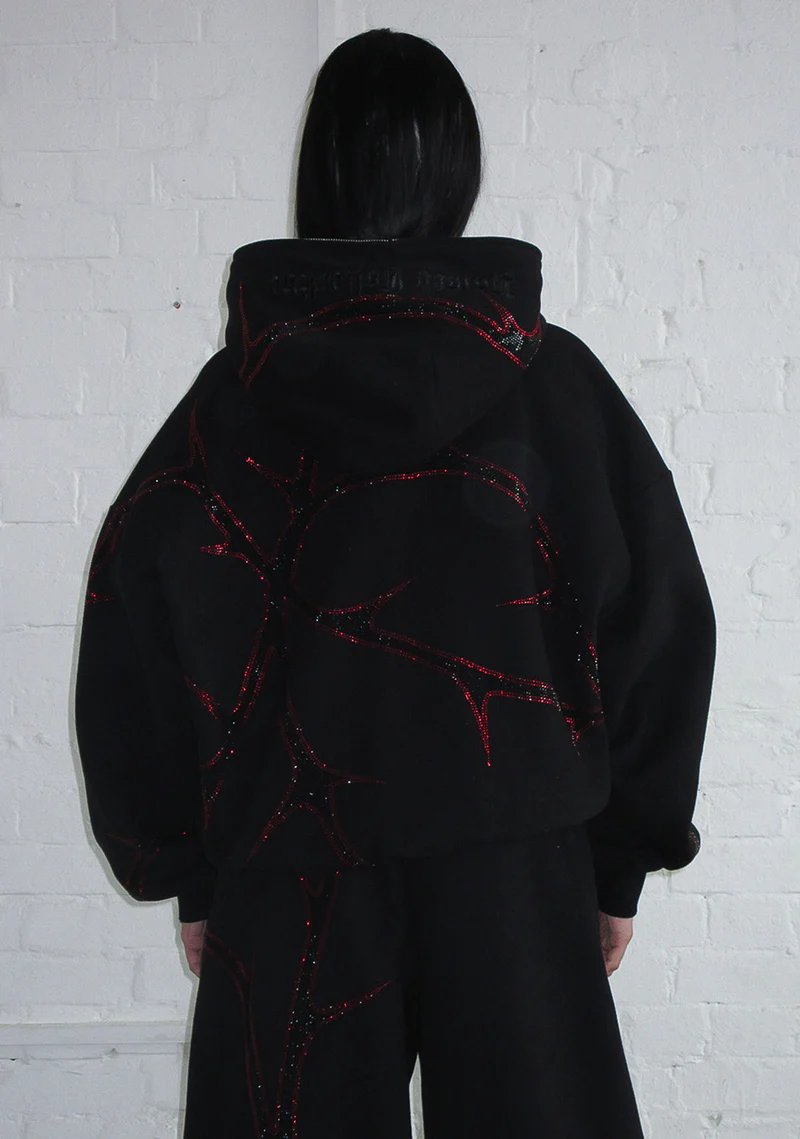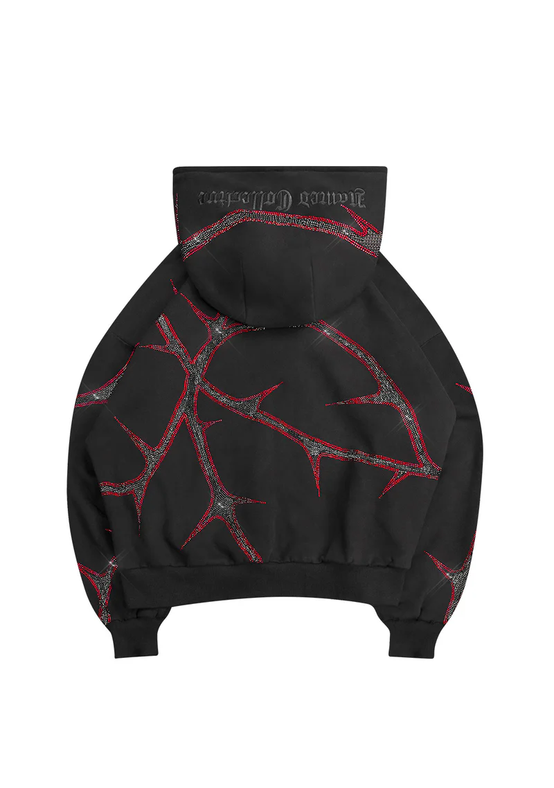 Thorn Rhinestone ZIP Hoodie Black And Red