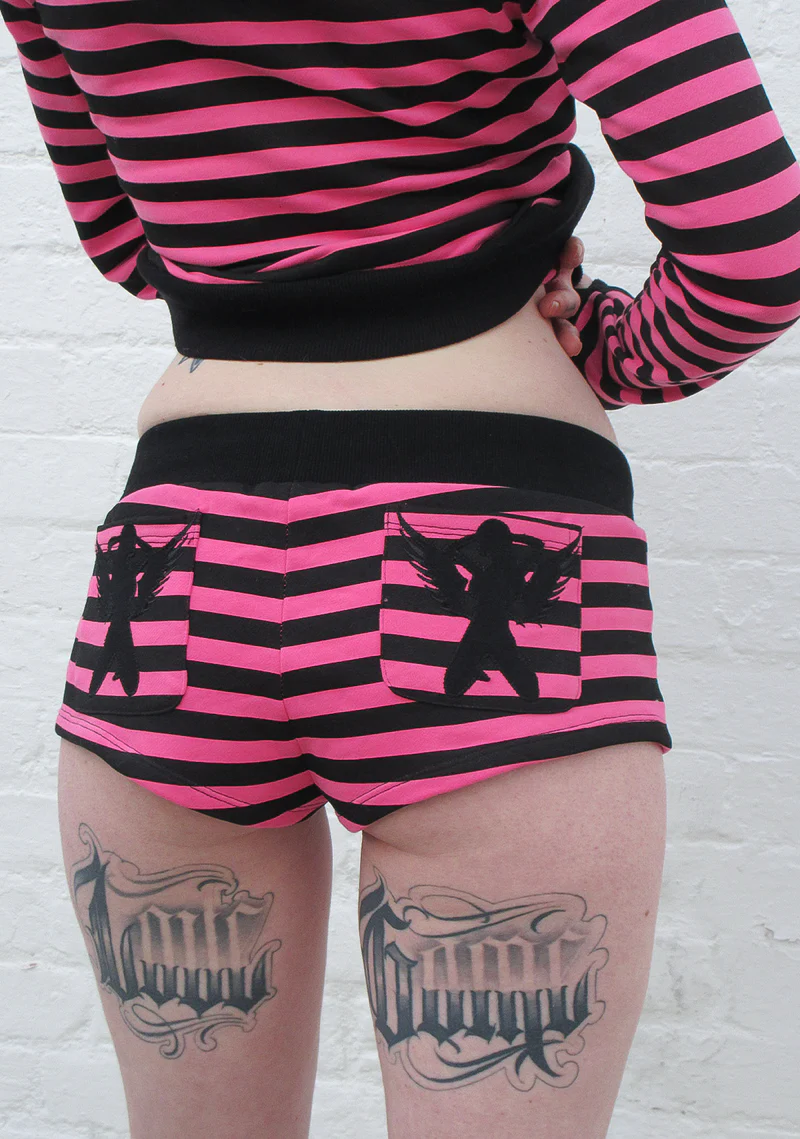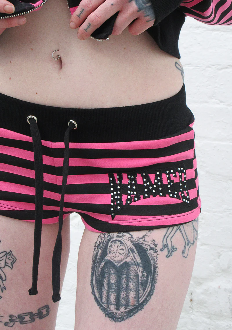 Vice Rhinestone Micro Shorts Hot Pink Stripe